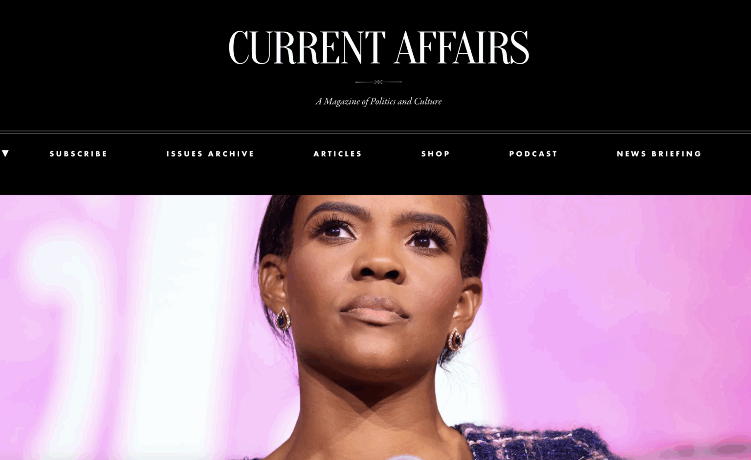This week’s Current Affairs magazine features an article about Conservative podcaster Candace Owens, who author Nathan J. Robinson suggests is so out of her mind and is “on another level entirely,” and that “many of her proclamations are so bizarre, they seem better described as “symptoms” than ideas.”